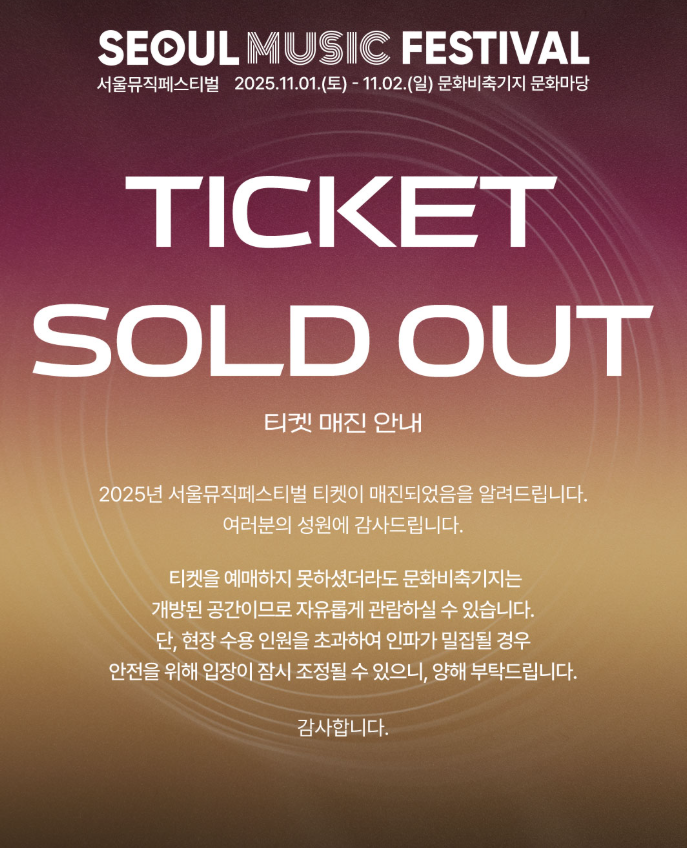 [2025 서울뮤직페스티벌] 티켓 sold out